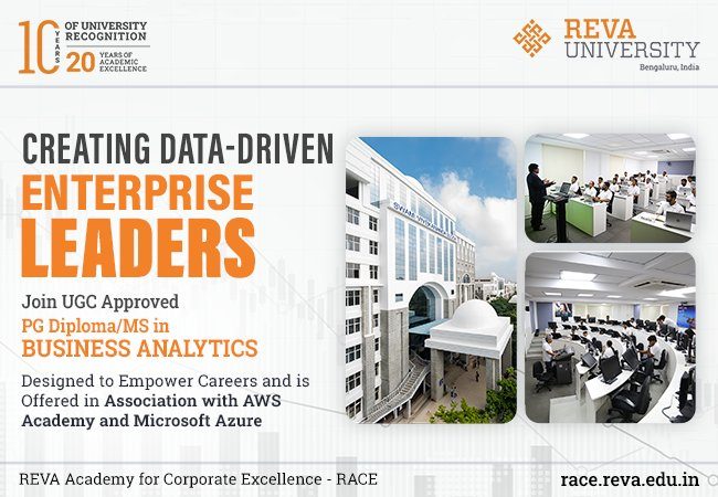 REVA Academy for Corporate Excellence (RACE), REVA University aims to develop visionary enterprise leaders for corporates through advanced and integrated learning capabilities. RACE offers best-in-class, specialized, techno-functional, and interdisciplinary programs designed to suit the needs of working professionals. The pedagogy of each program incorporates social and experiential learning to build transformative proficiencies in every participant. Check more about RACE, https://bit.ly/3SZQn4H