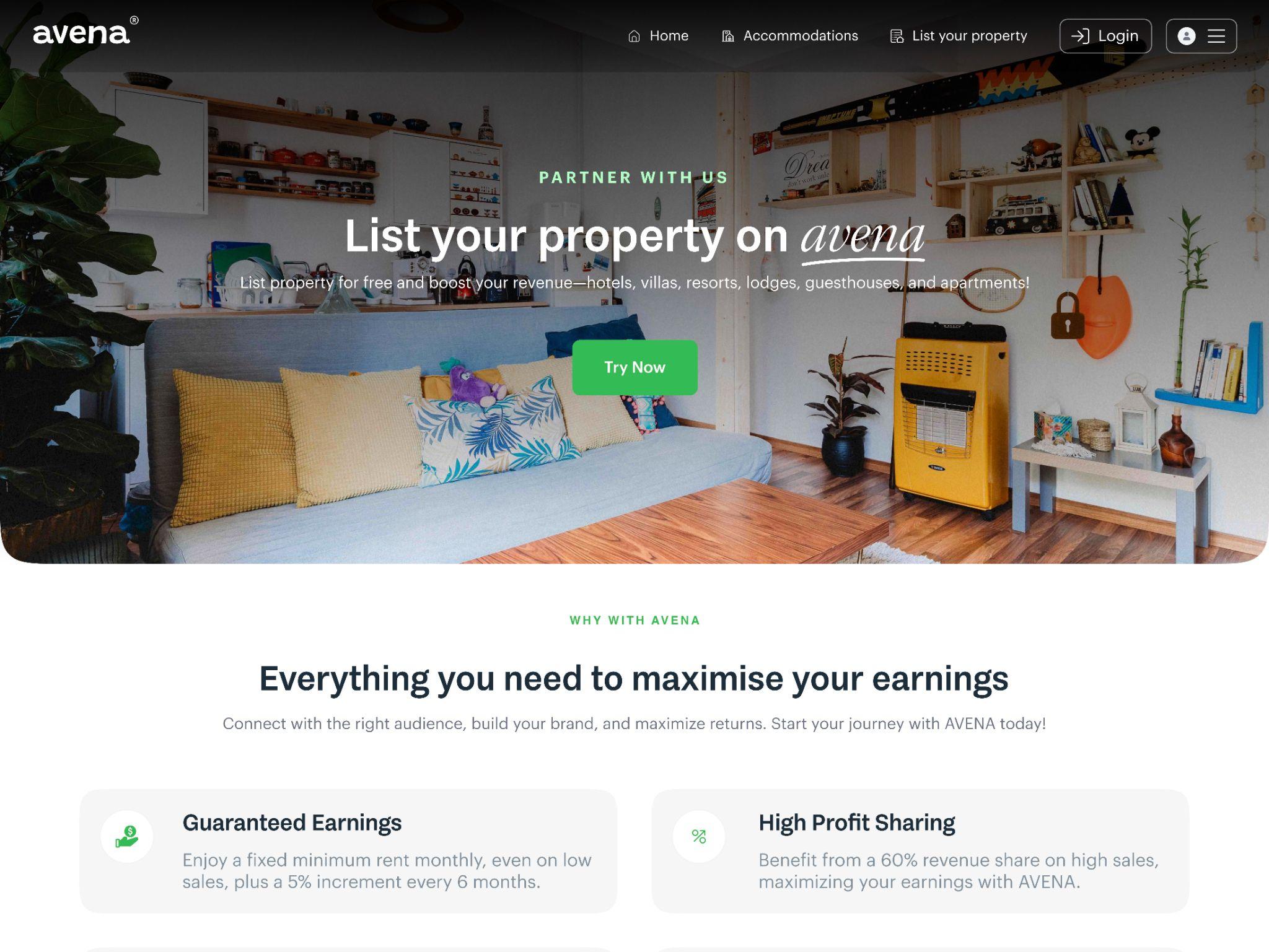 The platform differentiates itself within the hospitality market with its unique offering. Avena gives owners minimum guaranteed rent and a 60% profit share. At the same time, Avena takes care of the operational aspect of the entire process from bookings to property management.