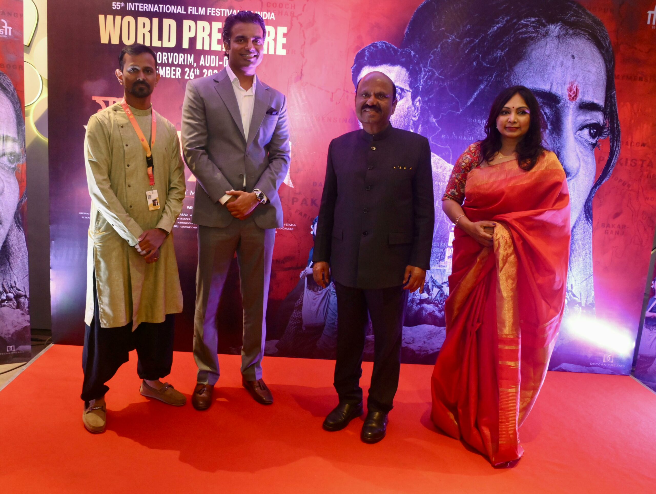 Renowned production house and producer of National Award winning 2022 superhit film Karthikeya 2, People Media Factory’s upcoming trilingual film Maa Kaali received its world premiere at 55th International Film Festival of India (IFFI), attended by the Hon CM of Goa Pramod Sawant, and the Governor of Bengal Ananda Bose alongwith the prodycer Mrs Vandana Prasad, director Vijay Yelakanti, lead actor Abhishek Singh and DGP of Goa Police Alok Kumar IPS.