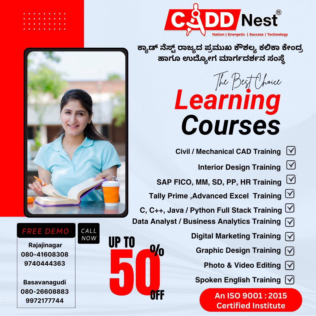 Bangalore, [5th July 2024] – CADD Nest, a leading name in computer training, proudly announces the expansion of its services with two branches in Bangalore. As an ISO Certified Institution, CADD Nest stands out as the best training institute in Bangalore, offering comprehensive courses designed to meet the growing demand for skilled professionals in the tech industry.