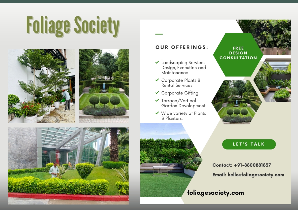 We understand that each client has unique needs and aspirations for their green spaces. Whether you’re a corporate office aiming to enhance your work environment, a restaurant seeking to create a memorable dining experience, a real estate developer showcasing prime properties, a school or college providing a welcoming environment for students, or a farmhouse looking to maintain a serene retreat, our expert team at Foliage Society is here to support you.