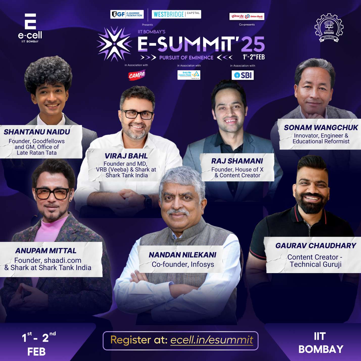 The Entrepreneurship Cell IIT Bombay, Asia’s largest non-profit student-run entrepreneurship promoting body, brings you E-Summit ‘25—Pursuit of Eminence, the 20th edition of Asia’s largest business conclave scheduled for the 1st- 2nd February 2025.