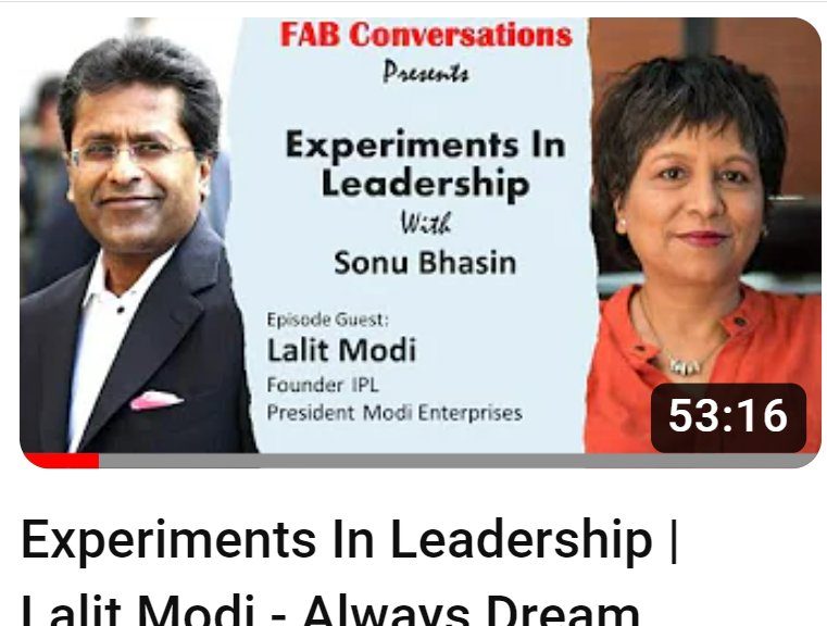 The interview on Experiments in Leadership with Sonu Bhasin explores more about Lalit Modi, his role in the IPL, the cable business in India and his grandfather Gujarmal Modi. Watch Live Video.