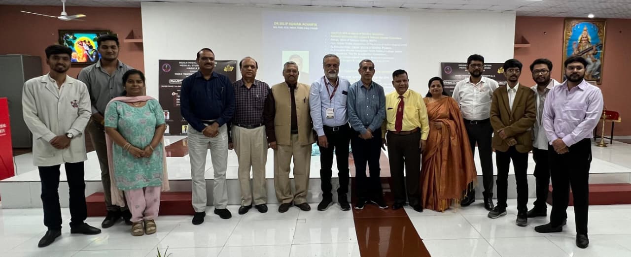 The workshop was held in the esteemed presence of Suresh Singh Bhadoria (Chairman, Index Group of institutions) and MayankRaj Singh Bhadoria (Vice Chairman, Index Group). Distinguished guests included Dr. Sanjeev Narang (Vice Chancellor, Malwanchal University), Dr. G.S. Patel (Dean, IMCHRC), Dr. Romi Srivastava (Vice Dean), Dr. R.C. Yadav (Additional Director), Mr. Dheeraj Jaiswal (CAO), and Dr. Aryan Shivhare (State General Secretary, IMA-MSN-MP).