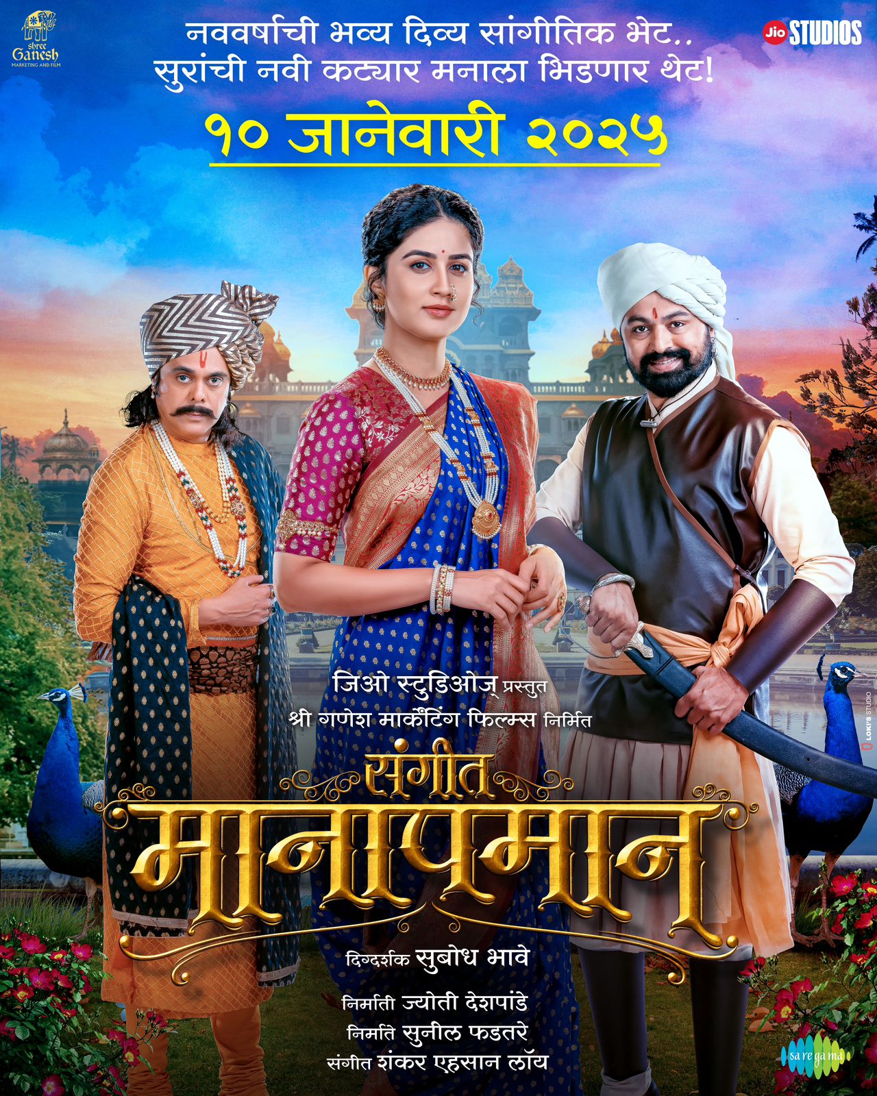 Presented by Jio Studios, A Shree Ganesh Marketing production, Produced by Jyoti Deshpande, and directed by Subodh Bhave, Sangeet Manapmaan starring Subodh Bhave, Sumit Raghvan, Vaidehi Parshurami and other talented actors. This captivating musical tale of a love triangle is slated to hit theaters on January 10, 2025.