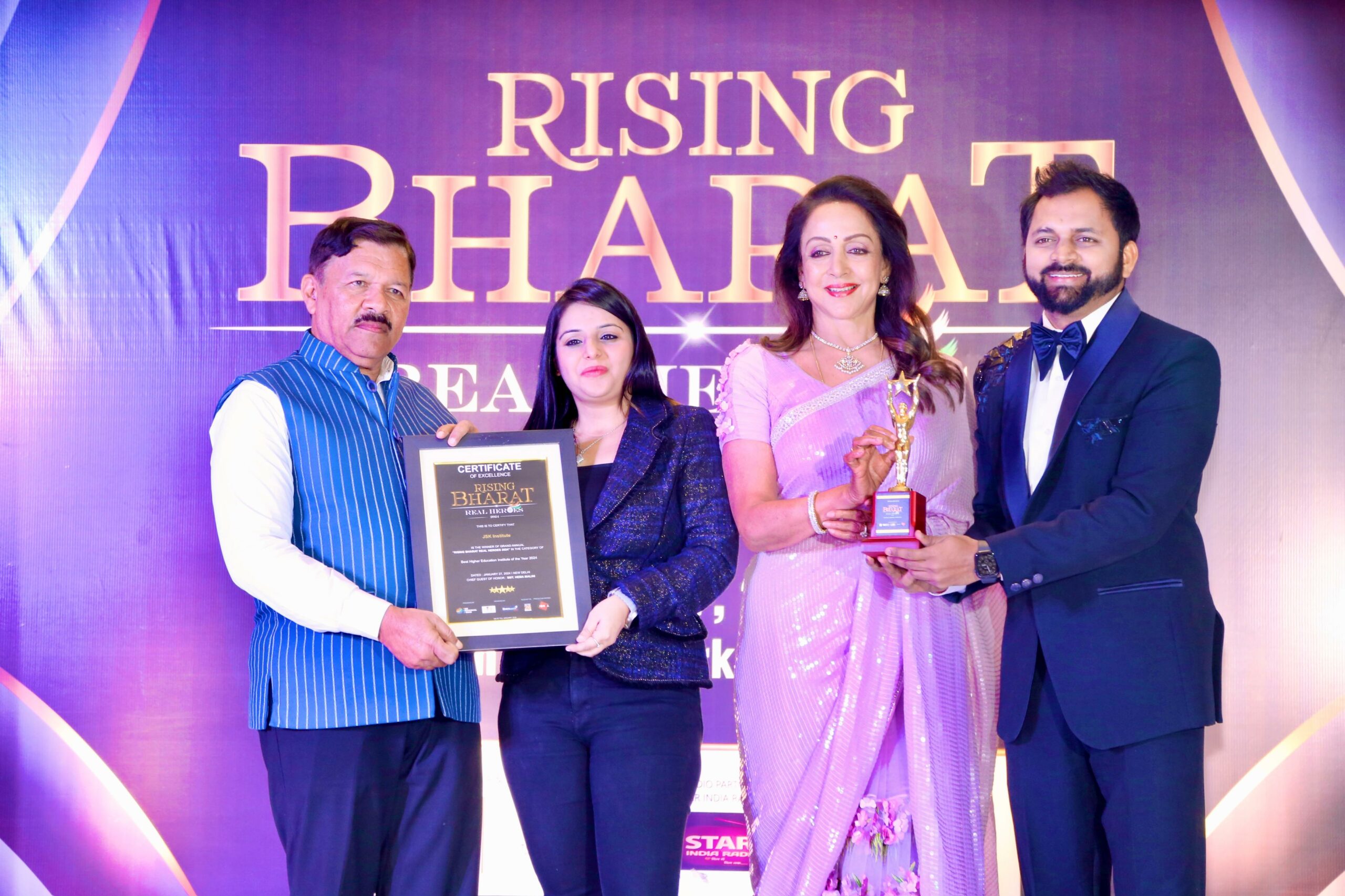 JSK Institute Thane Celebrates a Milestone! Prof Mukesh Gupta & Navishka Gupta receives 'Excellence in Education Award' from Legendary Actress Hema Malini!