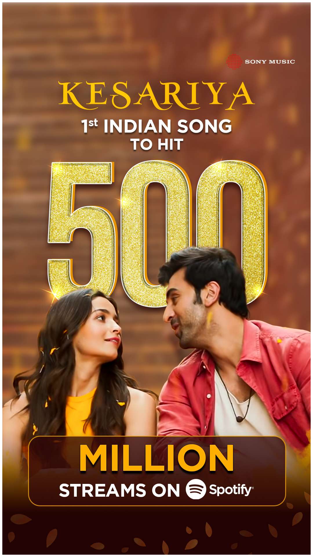“Kesariya”, from Brahmastra Makes History, the only Indian track to surpass 500 million streams on Spotify!