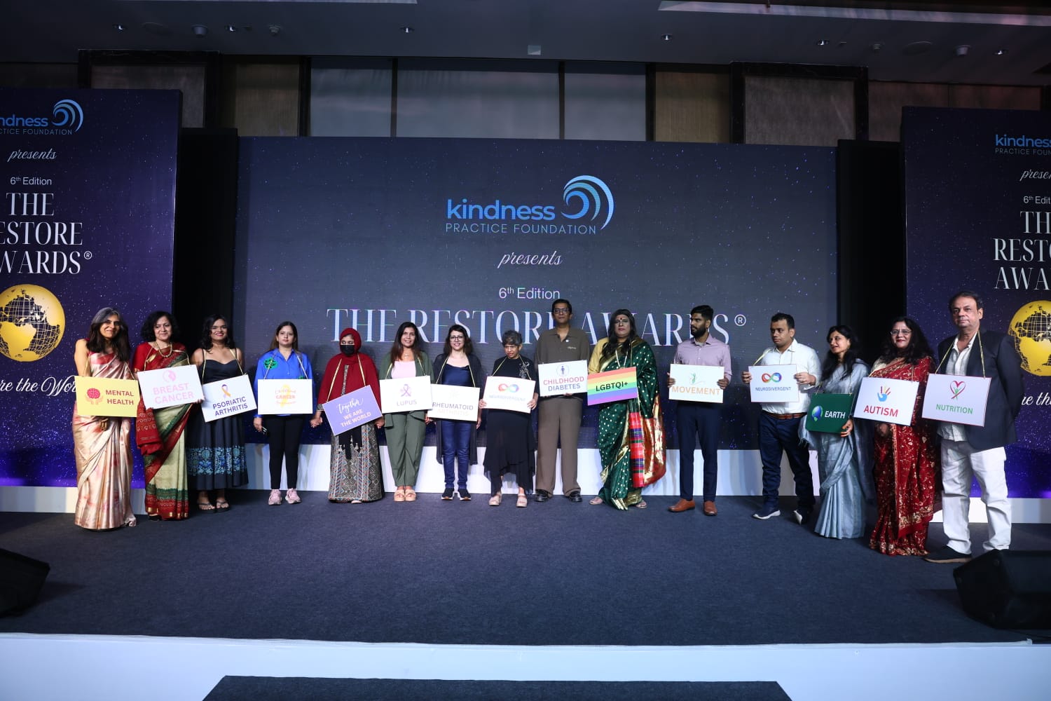 “Kindness is not a soft skill,” said Dr Chhachhi on stage. “It is an active choice that creates a powerful impact in helping us be in more positive mental health.” The awards are supported by corporates and individuals who donate for the cause to the foundation which implements awareness projects in mental health, inclusion and sustainability. TV actor Shweta Kawatra is a Kindness ambassador and supports mental health for women in different stages for the NGO. “Having battled postpartum depression, I’m happy to extend my support to The Restore Awards® as a tribute and a salute to the well-being warriors for their unparalleled humanitarian efforts towards empowering fellow humans.”