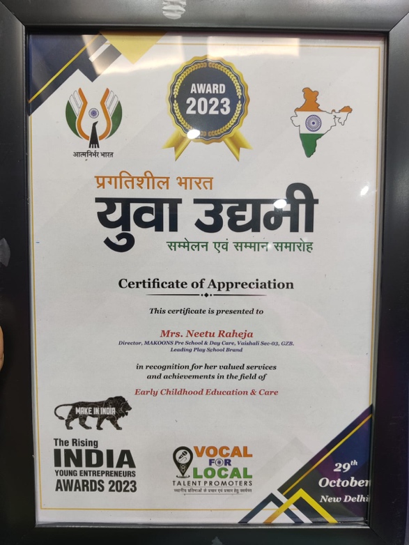 The Rising India Young Entrepreneur Awards, supported by the ‘Vocal for Local’ initiative, aim to highlight the significant contributions of local businesses to India’s socio-economic development. Makoons Play School’s achievement in this category underscores its role as a pioneering local institution in the realm of early childhood education.