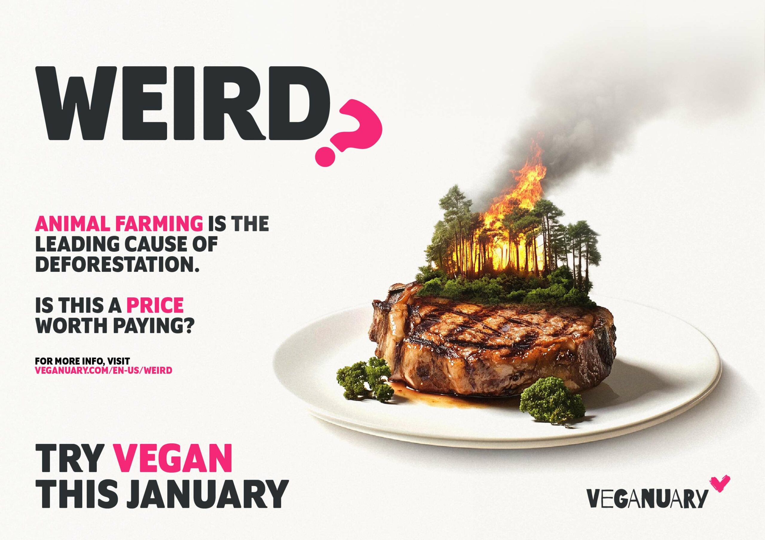 Supports Veganuary’s latest campaign theme showing the weird facts about eating animals