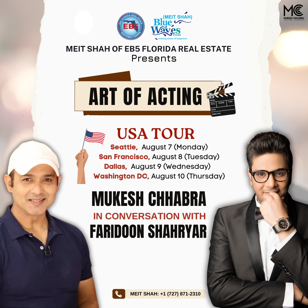 ‘Art of Acting’ USA Tour with Mukesh Chhabra and Faridoon Shahryar is scheduled to happen in four cities. Seattle on August 7, San Francisco on August 8, Dallas on August 9 and Washington DC on August 10.