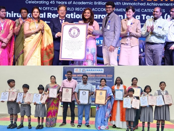 Smt. Ponguru Sharani, Director of the Narayana Group of Institutions, announced, “In alignment with our commitment to holistic education, the Narayana Group of Schools in Tamil Nadu proudly hosted the ‘Narayana World Records Festival 2024,’ during which we achieved two remarkable world records. The event showcased the ‘Longest Thirukkural Recitation Marathon by a Team (Multiple Venues)’ and the ‘Most Participants in a Spellathon at Multiple Locations.’ On September 22, 2024, the festival brought together 8,384 students from Pre-Primary I to Grade VIII, representing 19 branches in Chennai and one branch in Madurai. These extraordinary accomplishments received certification from Elite World Records, Asian Records Academy, India Records Academy, and Tamilan Book of Records, marking yet another significant milestone for Narayana.”
