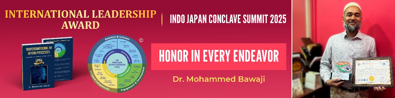 Pune-based Dr. Mohammed Bawaji has been honored with the prestigious International Leadership Award at the Indo Japan Conclave Summit 2025 in Tokyo. The award was presented by the Indian Ambassador in Japan, recognizing Dr. Bawaji’s outstanding contributions to Human Resource Innovation and the development of the HR Process Effectiveness Tool (HRPET), a globally recognized framework for enhancing HR efficiency and strategic impact.