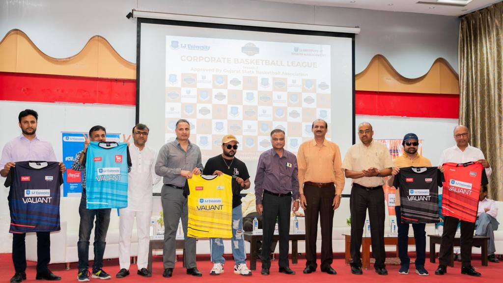 The Corporate Basketball League (CBL), envisioned by L J University, conceptualized by L J Institute of Sports Management and supported by the Gujarat State Basketball Association, Ahmedabad District Basketball Association, and Oasis Sports & Recreation, aims to provide a platform for talented basketball players to grow and showcase their skills. The league featured a total of 8 participating franchises, each building their teams through an auction process. More than 250 players participated in rigorous trials for a chance to be shortlisted and receive bids during the auction. This year’s auction saw an impressive distribution of over INR 8 lakhs among 130 international, national, and state-level players as auction money.