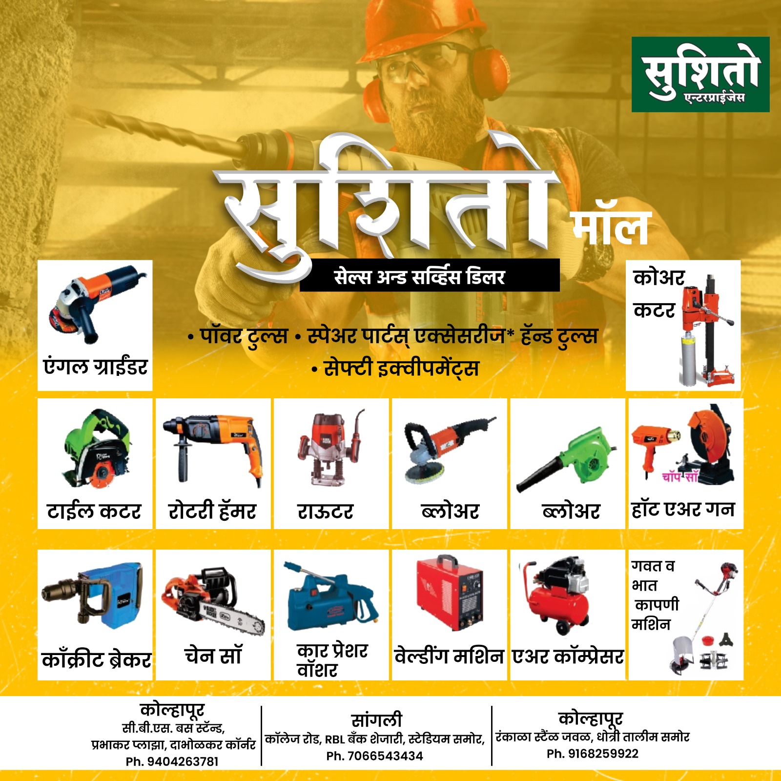 Who We Are Sushito Enterprises is the leading tool supplier in Kolhapur, Sangli, and Ichalkaranji. We understand that finding the right tools can be overwhelming, which is why we’ve created a simple, customer-friendly shopping experience. Whether you’re a homeowner working on weekend projects, a farmer tending to your fields, or a professional contractor managing large projects, we have everything you need under one roof.