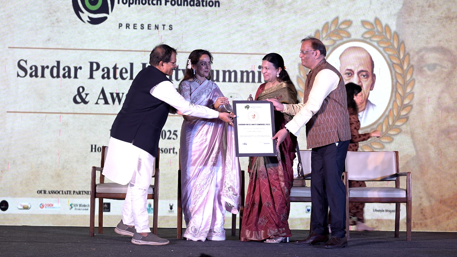 The award was presented by Smt. Hema Malini, legendary actress and hon’ble Member of Parliament and Shri Shripad Yesso Naik, hon’ble Minister of State for New and Renewable Energy, recognizing Talk Over Cookies’ outstanding contribution to promoting unity, cultural understanding, and educational collaboration across borders.