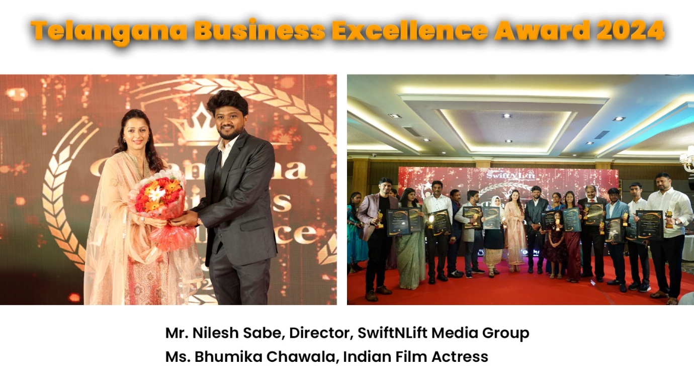 Join us in celebrating the Telangana Business Excellence Awards 2024, hosted by SwiftNLift Media Group at the Royalton Hotel. Featuring esteemed guests, distinguished entrepreneurs, and chief guest Bhumika Chawla, this event honour’s outstanding achievements in Telangana’s vibrant business community.