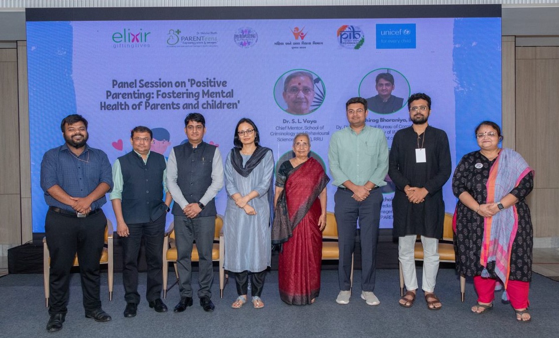 The second panel discussion was on the theme of positive parenting and fostering the mental health of parents and children with experts Dr. Nishchal Bhatt; Prof. Dr. S L Vaya, Chief Mentor at the School of Criminology & Behavioral Sciences, Rashtriya Raksha University; Dr. Arpan Yagnik, Author and TEDx Speaker; and Dr. Chirag Bhoraniya, IIS, Deputy Director, Central Bureau of Communication, Ministry of I&B, Government of India.