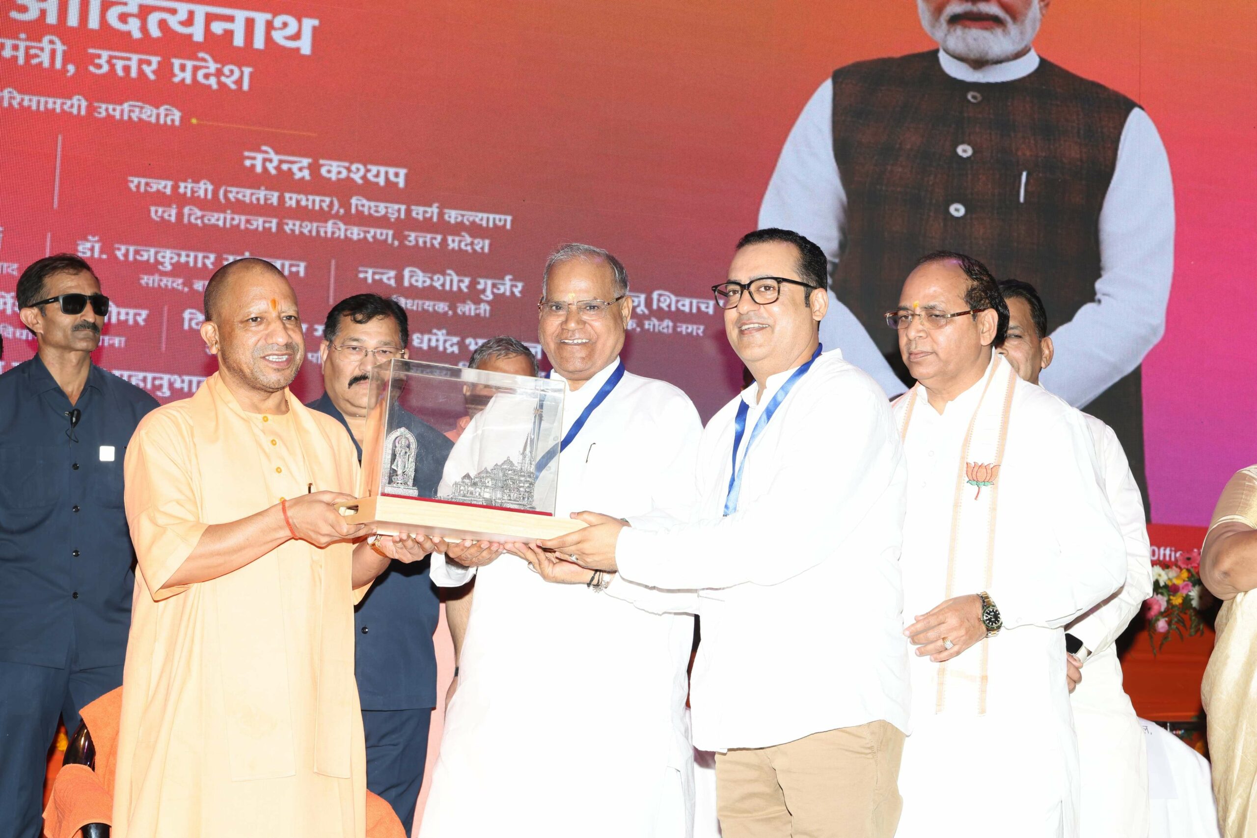The event was attended by Chief Minister Yogi Adityanath, Union Minister of Electronics and Information Technology Sunil Kumar Sharma, Minister of State (Independent Charge) for Backward Class Welfare and Empowerment of Persons with Disabilities Narendra Kashyap, MPs from various districts, and other distinguished guests.